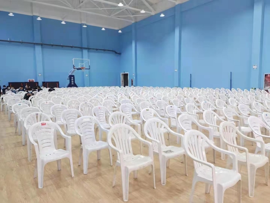 在第一天新冠疫苗接种工作结束后,场地工作人员发现由于人员流动大,场馆地面损坏的可能性较大,并且经过一天的疫苗接种工作,场地卫生条件已无法满足第二天疫苗接种的需要。为了给第二天的疫苗接种干工作提供更加卫生、舒适的场地,学院场馆服务团队积极作为、有需跟进,学生功能党小组也积极参与其中,大家主动放弃休息时间,晚上十点还奋斗在一线——铺设地板防护罩,清理场地卫生,重新摆放观察区的座椅。
