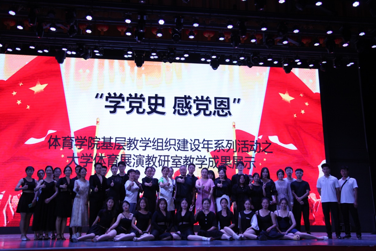 6月27日下午,“学党史 感党恩”—77779193永利“基层教学组织建设年系列活动”之大学体育展演教研室教学成果展示活动在大学生活动中心成功举办。活动通过太极功夫扇、武术、健美操、国际标准舞、普通交谊舞、街舞等16个现场表演,展示了大学体育展演教研室聚焦主业促发展、锐意改革开新局的教学成果