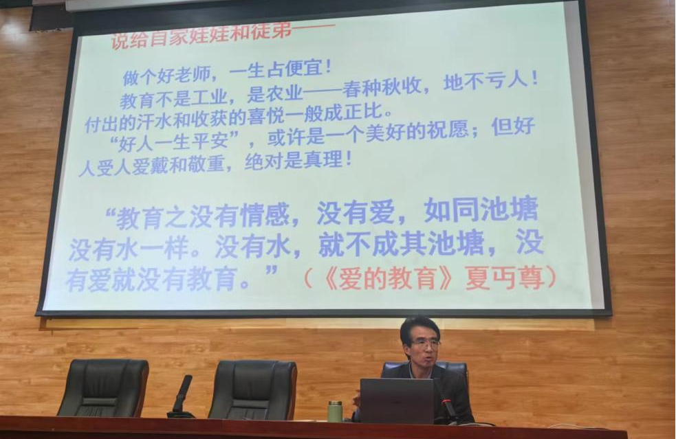 仇千记老师以苏霍姆林斯基的教育理念“教育技巧的全部奥秘,也就在于如何爱护学生”作为切入点,深入阐述了“爱生”与“勤业”的紧密联系。他提出:“既要一视同仁,对待学生时,要偏爱学困生、博爱中等生、严爱优等生”。在具体教学中,他强调要严慈相济,善待学生,通过生动的案例,仇老师向大家展示了如何在不同情境下灵活运用教育技巧。