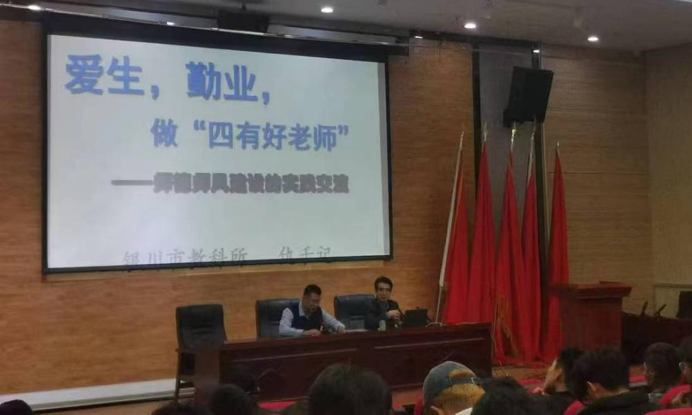 为进一步培养体育教育专业学生的教育情怀,提升教学素养,10月9日19:00,在怀远楼2楼报告厅举办了体育教育专业教师能力提升系列讲座的第五场。此次讲座邀请了银川市教科所仇千记老师,以《爱生、勤业,做“四有好老师”》为主题,为在场学生带来了一场充满教育智慧的分享。讲座由体育教育系主任王振洲主持,体育教育专业全体学生参加讲座。