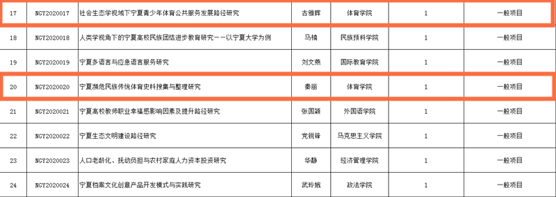 今日,学校公布了2020年度宁夏高等学校科学研究项目立项名单,我院古雅辉和秦丽两名教师申报的项目均获立项批准。
