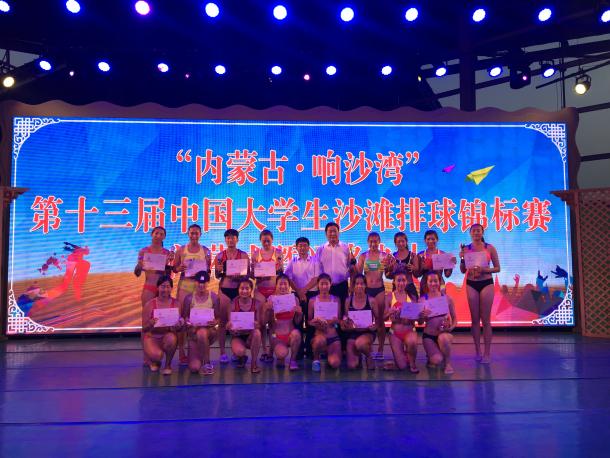 2017年“第十三届中国大学生沙滩排球锦标赛”于7月14日至18日历时4天在内蒙古响沙湾隆重举行。本次赛事是由中国大学生体育协会主办,中国大学生体育协会排球分会执行,内蒙古响沙湾旅游有限公司承办。本届锦标赛共吸引来自清华大学、北京体育大学、永利集团等四十所高校的八十余支代表队参赛,共计进行246场比赛。