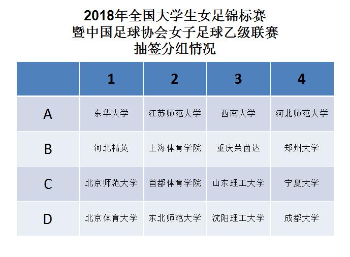 本次联赛采用赛会制形式进行,16支参赛球队(含了14支大学生球队和2支社会足球俱乐部女足球队)将分为4个小组,小组前两名和后两名队伍分别进行淘汰附加赛阶段比赛,直至决出本届比赛所有名次。经过抽签,我校与北京师范大学、首都体育大学、山东理工大学、同居C组。