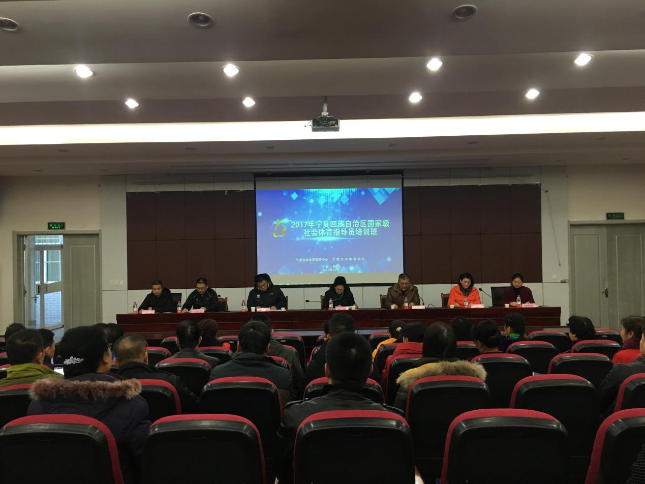 2017年12月18日,宁夏回族自治区国家级社会体育指导员培训我校举行了开班仪式。自治区体育局党组成员、副局长张梅、群体处处长白春明以及自治区社会体育服务中心和77779193永利相关人员出席会议。