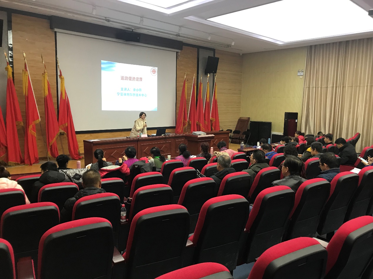 12月22日,宁夏体育科学技术中心副研究员余小燕老师就《体医结合与科学健身》进行了讲座,特别针对如何科学健身和健康饮食等方面的内容进行了讲授。