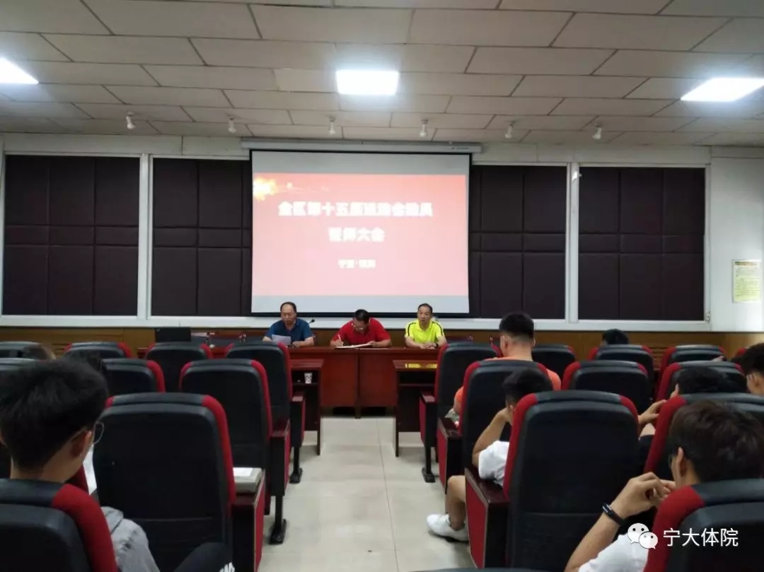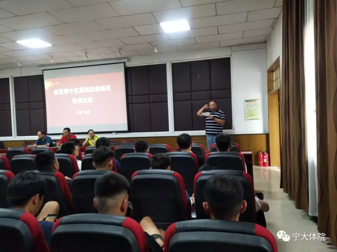 宁夏回族自治区第十五届运动会开赛在即,为全力做好各项准备工作,充分调动参赛运动员的积极性,全力以赴备战,明确参赛纪律和参赛目标,6月23日下午,永利集团全区第十五届运动会代表团赛前动员会在77779193永利报告厅顺利召开。77779193永利院长咸云龙、副院长赵奋军、竞技体育服务中心主任张宁和校男子篮球队教练彭飞翔出席会议,男子篮球队、女子篮球队、羽毛球队和男子足球队共58名队员参加会议。
