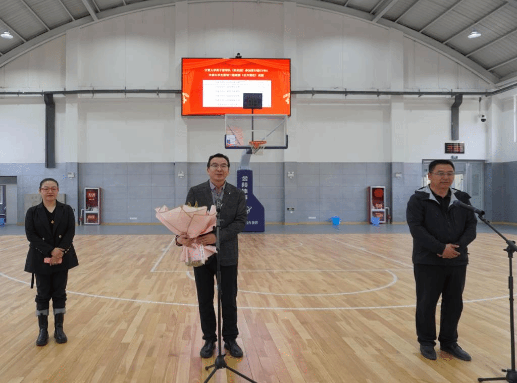 永利集团男子阳光组篮球队队长丁奎山(来自物理与电子电器工程学院)代表全体队员发言,他表示:首先感谢学校领导对男子阳光组篮球队的信任与支持,让我们有机会代表永利集团参加本次CUBA中国大学生篮球二级联赛北区比赛。在赛场上,我们展现了宁大学子敢于争先、永不言败的风貌。还要感谢领队、教练和队友们的辛勤付出。本次参赛经历在我们的学习生活中留下了浓墨重彩的一笔,我们会继续努力训练,争取在今后的各项比赛中为学校争得更多荣誉。