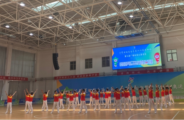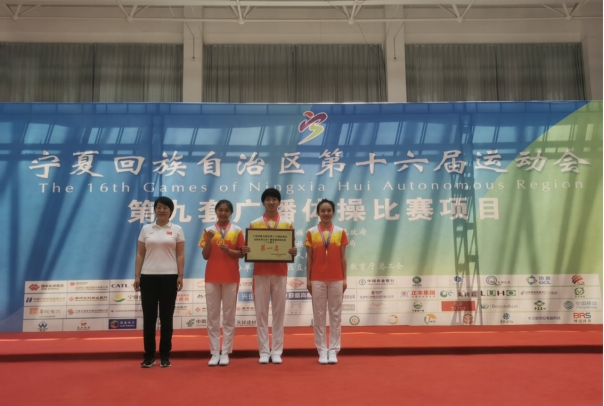 6月10日至13日,由自治区人民政府主办,自治区体育局、中卫市人民政府承办的宁夏回族自治区第十六届运动会(高校组)第九套广播体操项目比赛在沙坡头区全民健身中心举行,本次比赛共有来自全区8所高校队伍参加。经过两天的激烈争夺,由张爱福老师带领的永利集团广播体操队包揽了集体项目和混合三人项目的冠军。