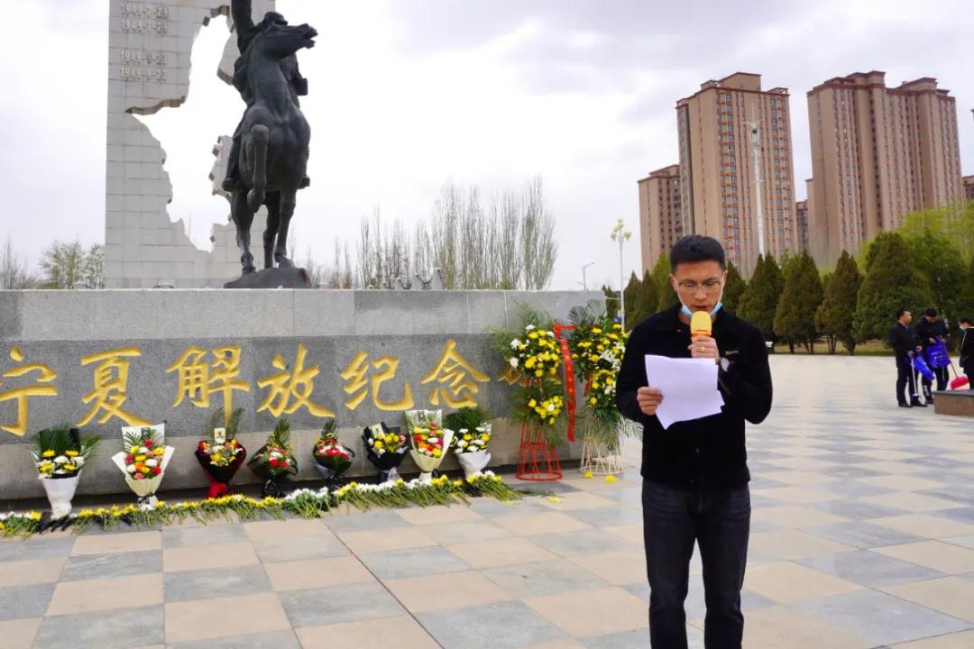 活动开始,全体师生齐唱国歌。紧接着大家共同进行一分钟默哀,深切表达对革命先烈的崇高敬意。随后王玮老师作为党员代表,为同学们介绍宁夏解放纪念碑的历史由来和背后的故事。王玮老师带领学生党员代表在党旗下进行入党宣誓,马晓娜老师带领学生团员代表在团旗下重温入团誓词。全体师生在活动最后怀着沉重的心情为先烈献花,表达对先烈的哀思之情。