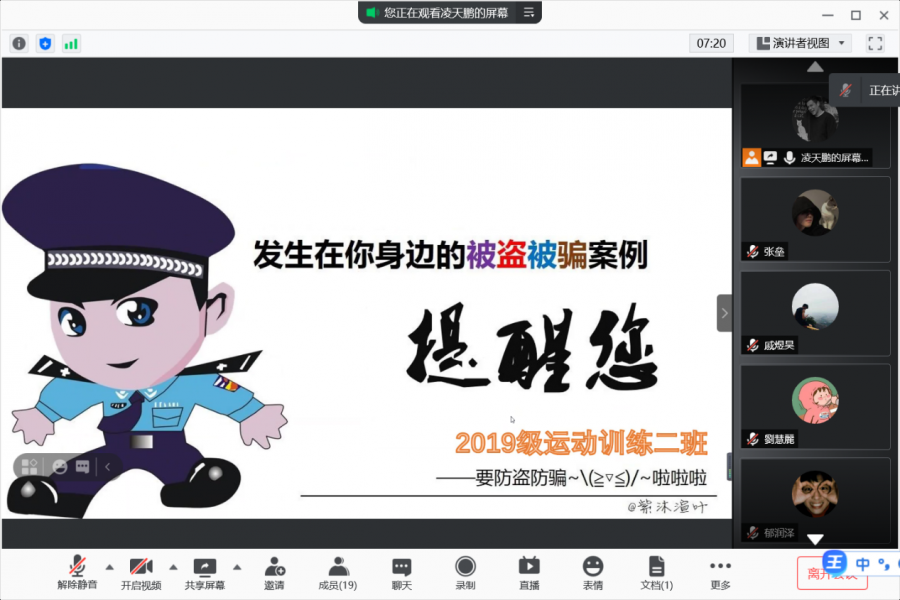 为增强同学们的防盗、防骗意识,2019级武术与民族传统体育一班团支部4月1日于怀远校区怀远楼101教室开展关于防盗、防骗主题团日活动。本次活动由团支书周文迪同学主持。