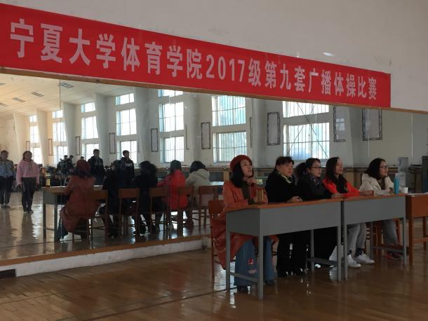 本次比赛以体操普修课程教学小组为单位进行比赛,共10个教学小组,其中包括:体育教育专业4个小组、社会体育1个小组、运动训练专业4个小组,民族传统体育专业1个小组。随着“全国第九套广播体操现在开始”的音乐响起,在高昂且激情的音律中,同学们昂首挺胸,伸臂,扩胸、转体、踢腿、弯腰。动作娴熟到位,张弛有度,充盈着刚健之美,洋溢着青春的气息,飞扬着动人的神采。比赛中,各班同学精神饱满,动作整齐,齐心协力为班集体争取荣誉,表现的非常团结。最终,评比出比赛前三名:第一名社会体育5组,第二名:体育教育专业2组,第三名:民族传统体育5组。