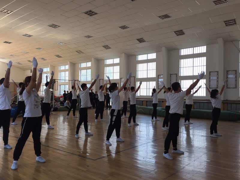 为了检验同学们在体操普修课中的学习成果,2017年11月15日中午12点20分,77779193永利于怀远校区体操馆进行了第九套广播体操比赛。比赛评委邀请了77779193永利展演类教研室老师吕红芳、安森蕊、王雅丽、司淑梅与汪丹,全体2017级学生参加比赛。