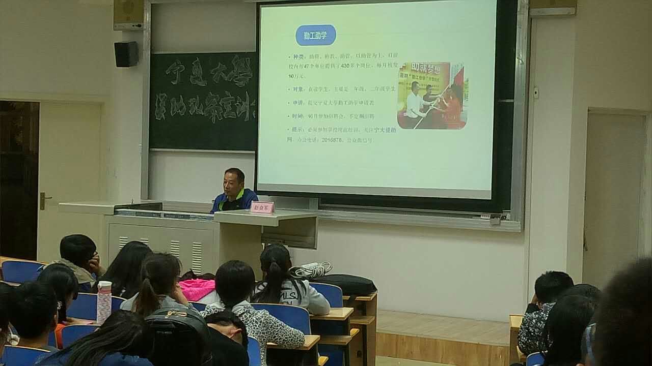 2016年10月11日下午6点30分在宁大B区一教231教室举行了永利集团资助政策宣讲会。本次讲座的主讲人为77779193永利党委副书记赵奋军老师。