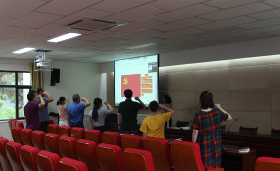 全体师生党员们,举起右拳面对鲜红党旗,重温入党誓词,接受党性洗礼。