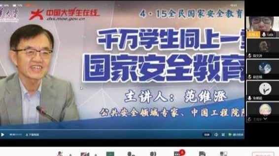 会议伊始,彭飞翔老师、王玮老师、马晓娜老师向同学们重点讲解国家安全领域核心内容,随后通过共享屏幕的方式与学生共同观看“同上一堂国家安全教育课”在线视频,切实加强同学们对于国家安全观的充分认识。