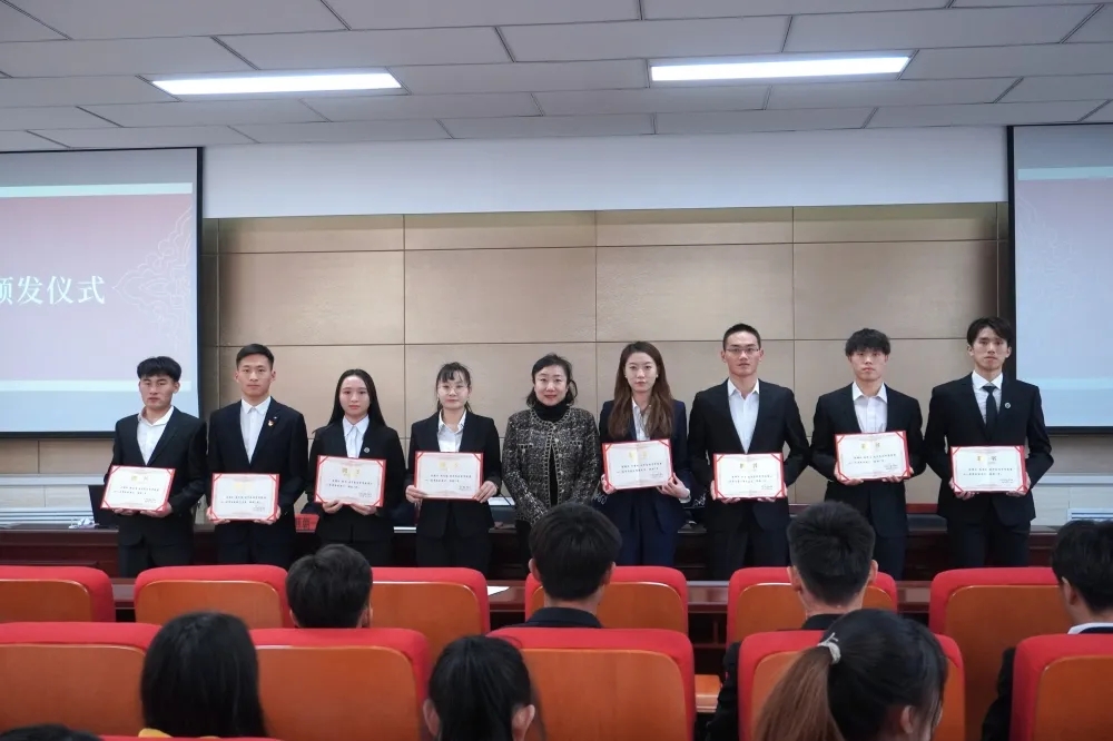 首先,由严津老师宣读第十八届团委、学生会、易班工作站、体质测试服务部各部人员聘用名单。随后,严津老师、彭飞翔老师、韩朝一老师依次给主席团成员、团委副书记、各部门主要负责人、负责人颁发聘书。