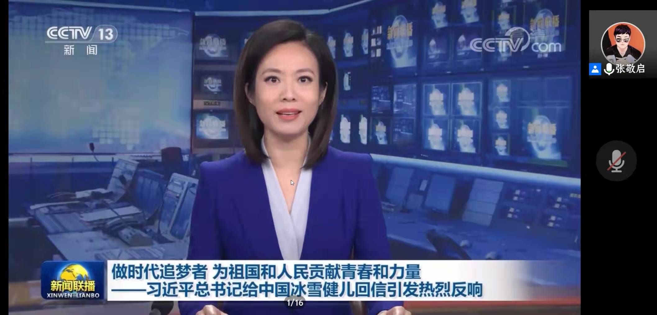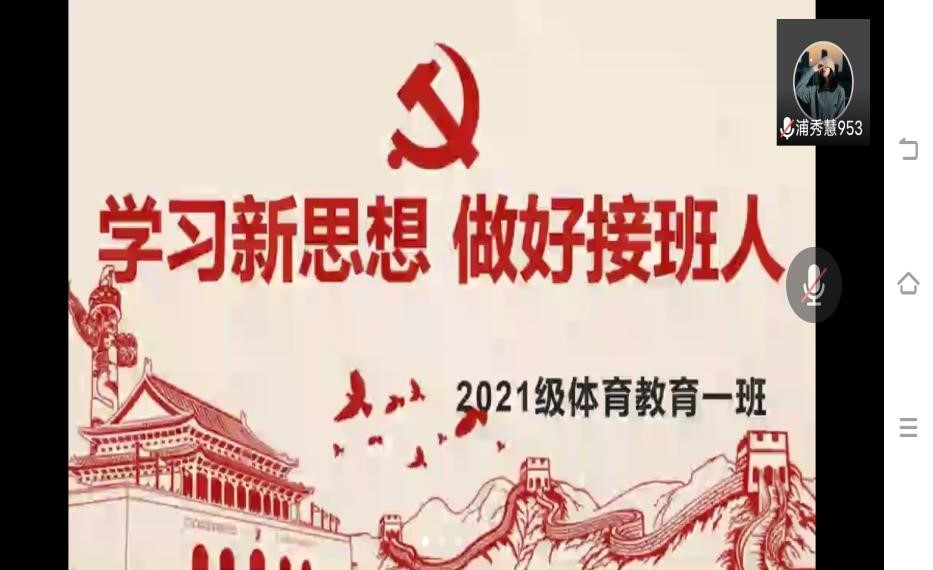 会议伊始,刘慧慧同学给大家展示了,习近平总书记去冰雪基地看望运动健儿的新闻与习近平总书记给运动健儿的回信和回信精神。之后又播放了以习近平新时代中国特色社会主义思想与怎么理解新时代的丰富内涵为主题的短片。