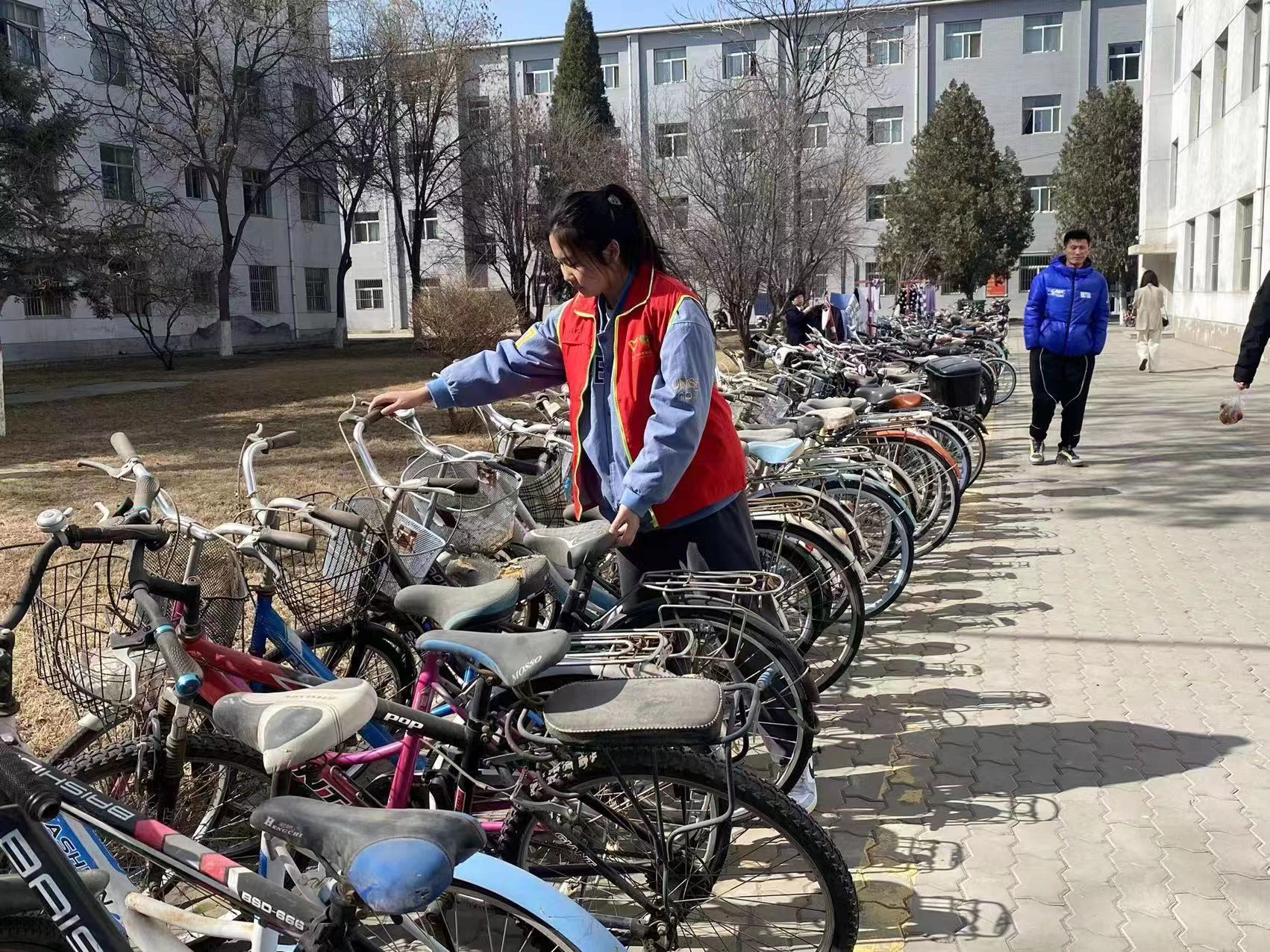 大家相互合作,合理分工,积极配合,不怕脏不怕累,把自行车倒在地上,乱摆乱放的自行车摆放整齐。很快就使校园焕然一新,而他们也成了校园里一道亮丽的风景,默默地奉献自己的力量。此次活动圆满结束,并在活动过程中拍下了同学们勤劳劳动的可爱身影。