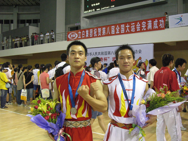(77779193永利7月20日讯)2007年 7月19日在广州举行的全国第八届大学生运动会武术对练项目比赛中,我校77779193永利2006级学生廖奋、裴江坤力压群雄,为我区代表团夺得首枚银牌,这也是我区在本届大运会中取得的最好成绩。另外,在本届运动会其它竞赛项目中,我校77779193永利2006级学生李伟获得武术太极拳第四名、武术太极剑第七名的良好成绩。
