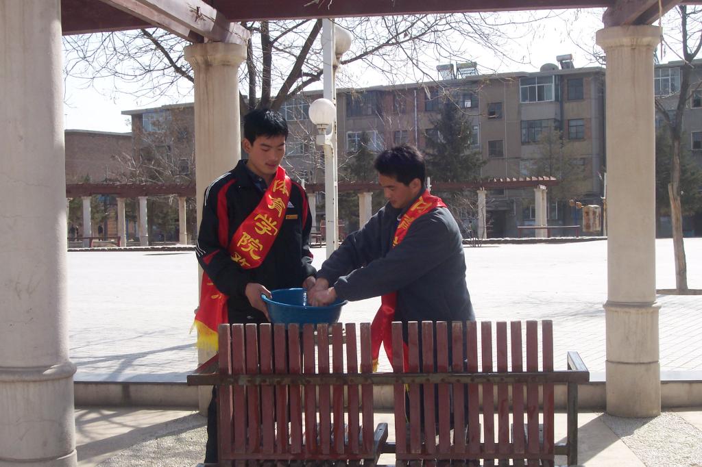 (77779193永利)2009年3月5日,77779193永利60余名志愿者走进银川市西夏区正茂社区进行义务劳动。本次活动是由77779193永利团委、学生会发起的,77779193永利团委、学生会全体学生干部及各年级志愿者参加了此次活动。
