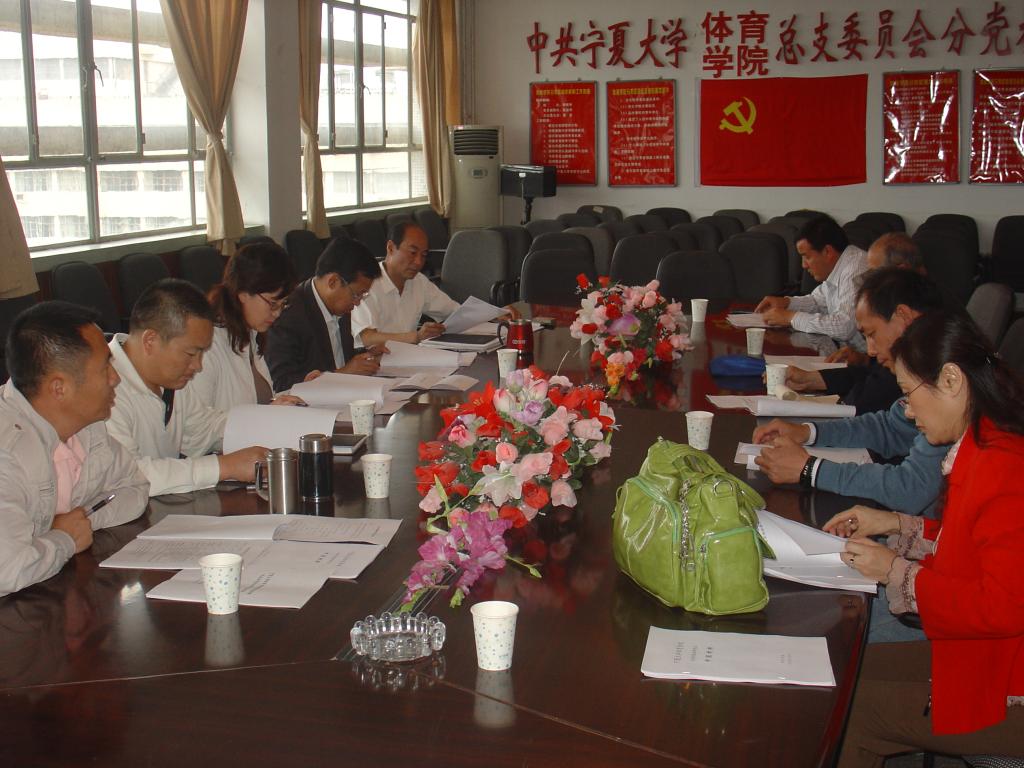 2009年5月12日,增设运动训练专业专家论证会在77779193永利会议室召开。参加会议的校领导和专家有:教务处党小龙副处长,学生处王淑莲副处长,宁夏医科大学体育教学部吴飞燕,银川九中米国华副校长,瓷窑堡工会申世国副主席,学校教学督导组周企良督导,校内专家孙成良老师。学院李树泮书记,刘旭东院长,马亦兵副院长,吴军副院长,咸云龙副院长参加了会议。