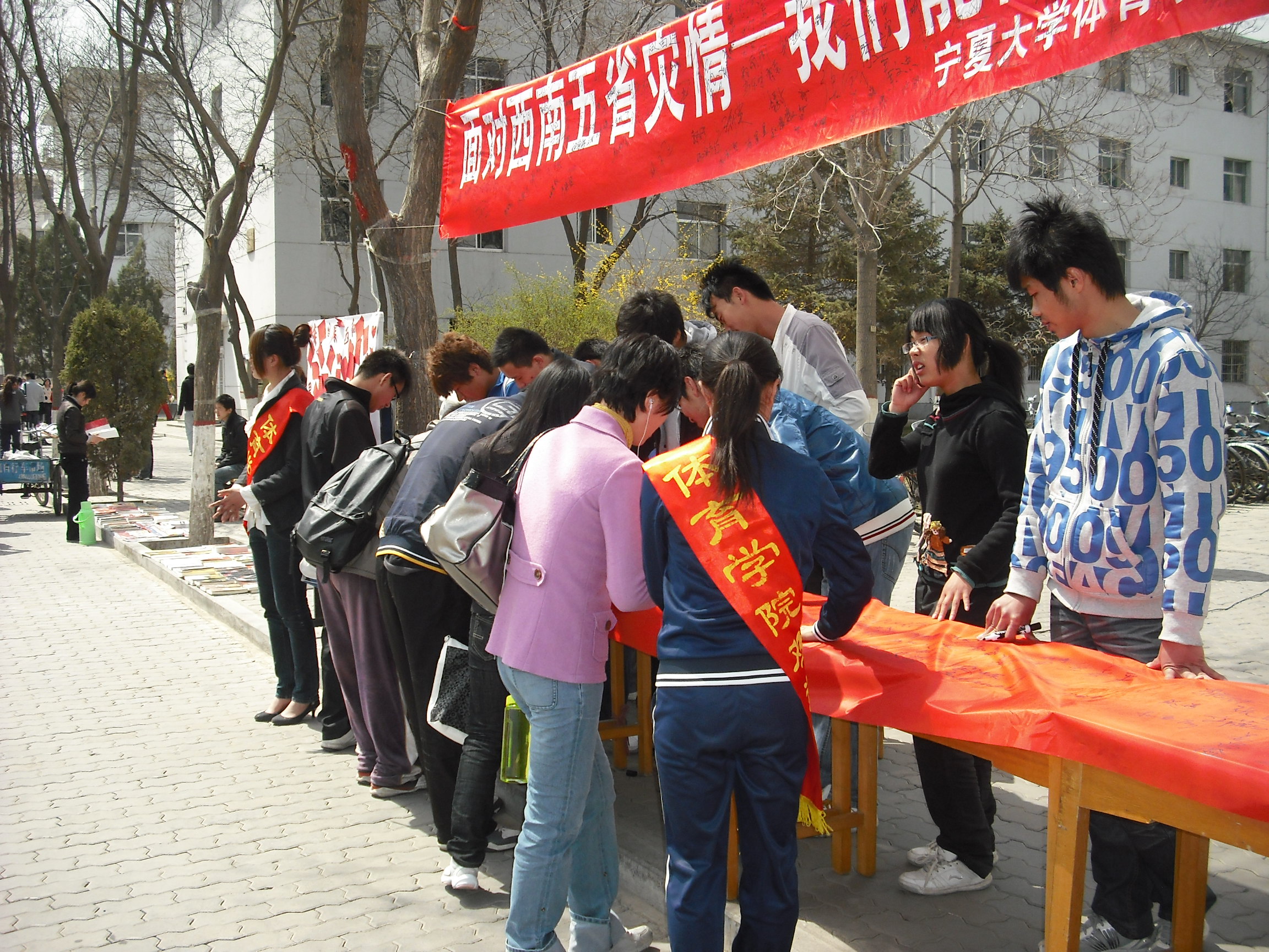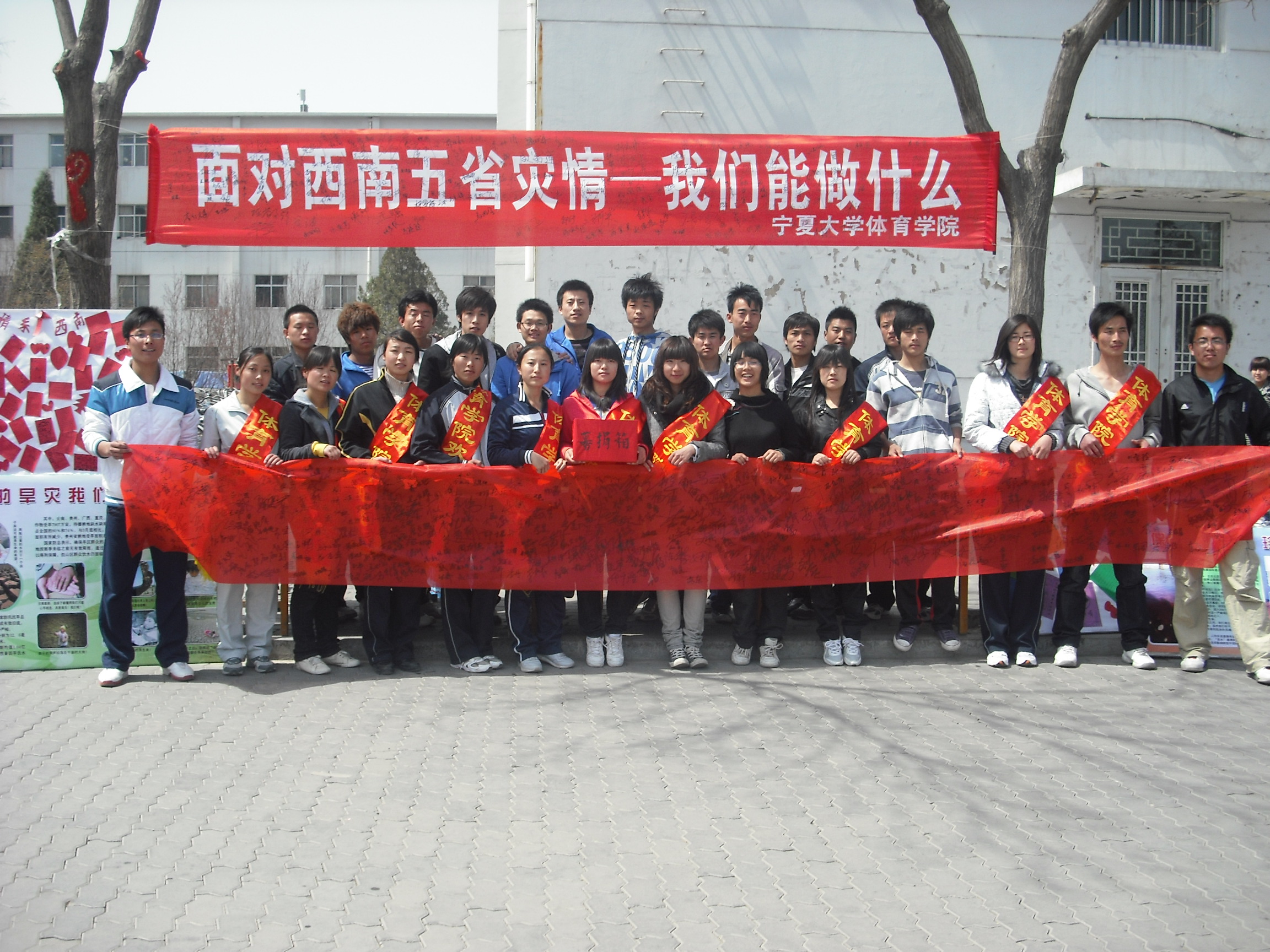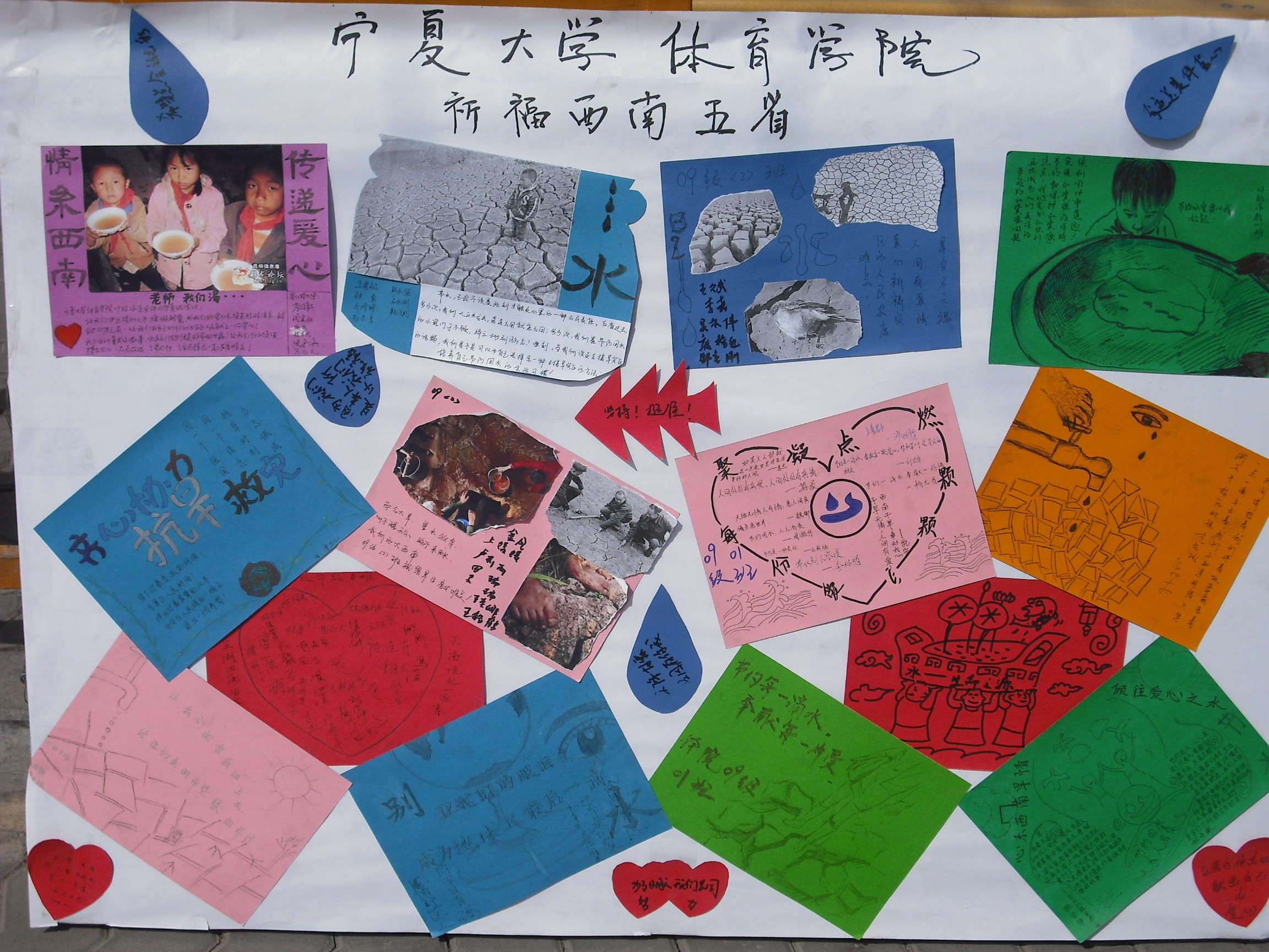 我院学生十分关注此次受灾群众的安危,发出倡议:希望广大同学伸出援助之手,向灾区人民献出自己的一份爱。在学院学生工作办公室的指导下,院团委、学生会于4月14日上午在校本部回餐门口,举行了以“心系西南旱情、倾注爱心之水”为主题的募捐活动,在募捐现场摆放了由各班学生制作的宣传标语、展板及他们对灾区人们的深情寄语。在捐款活动中,同学们陆续在“面对西南灾区,我们能做什么”的条幅上签下了自己的名字。