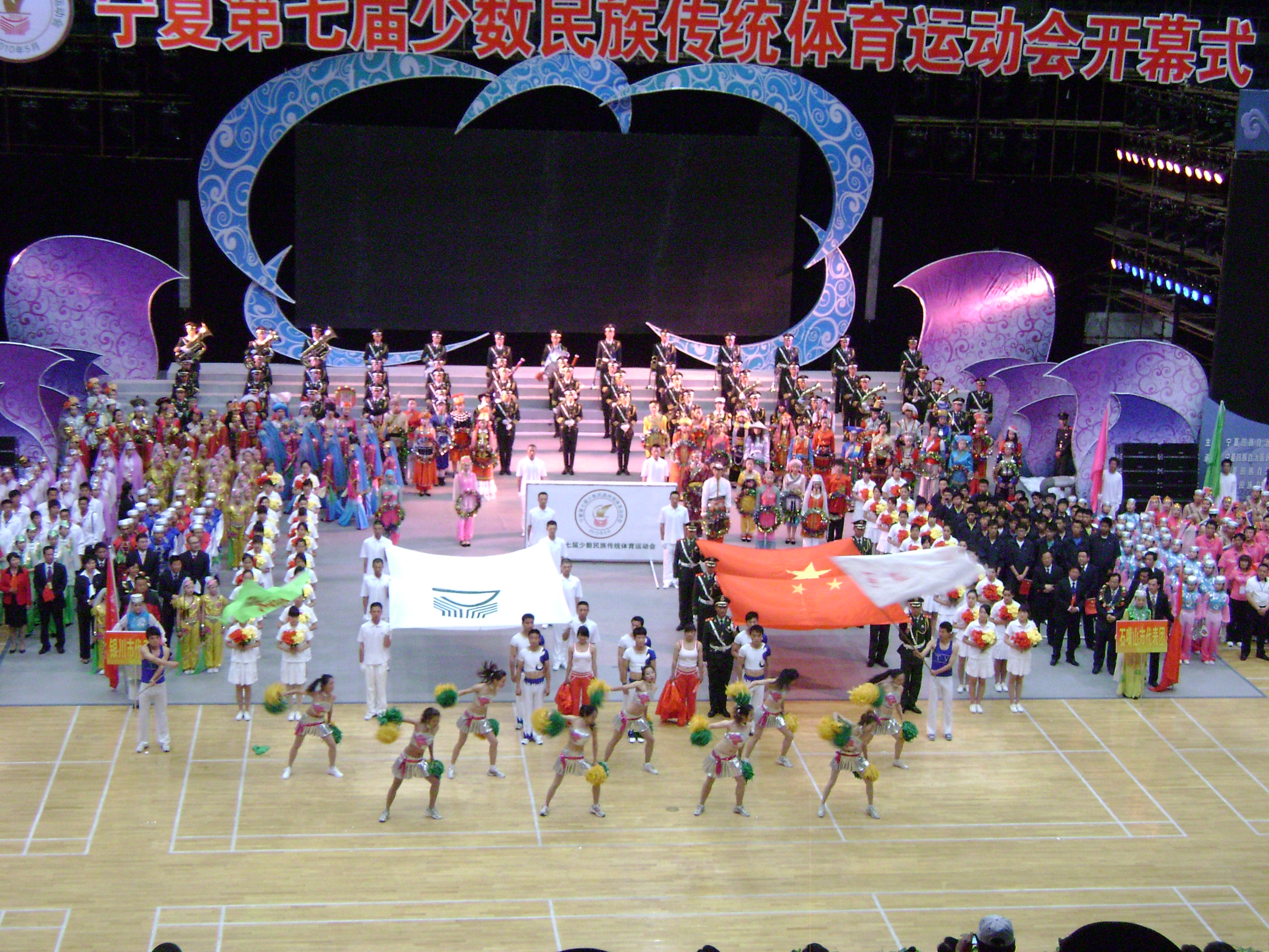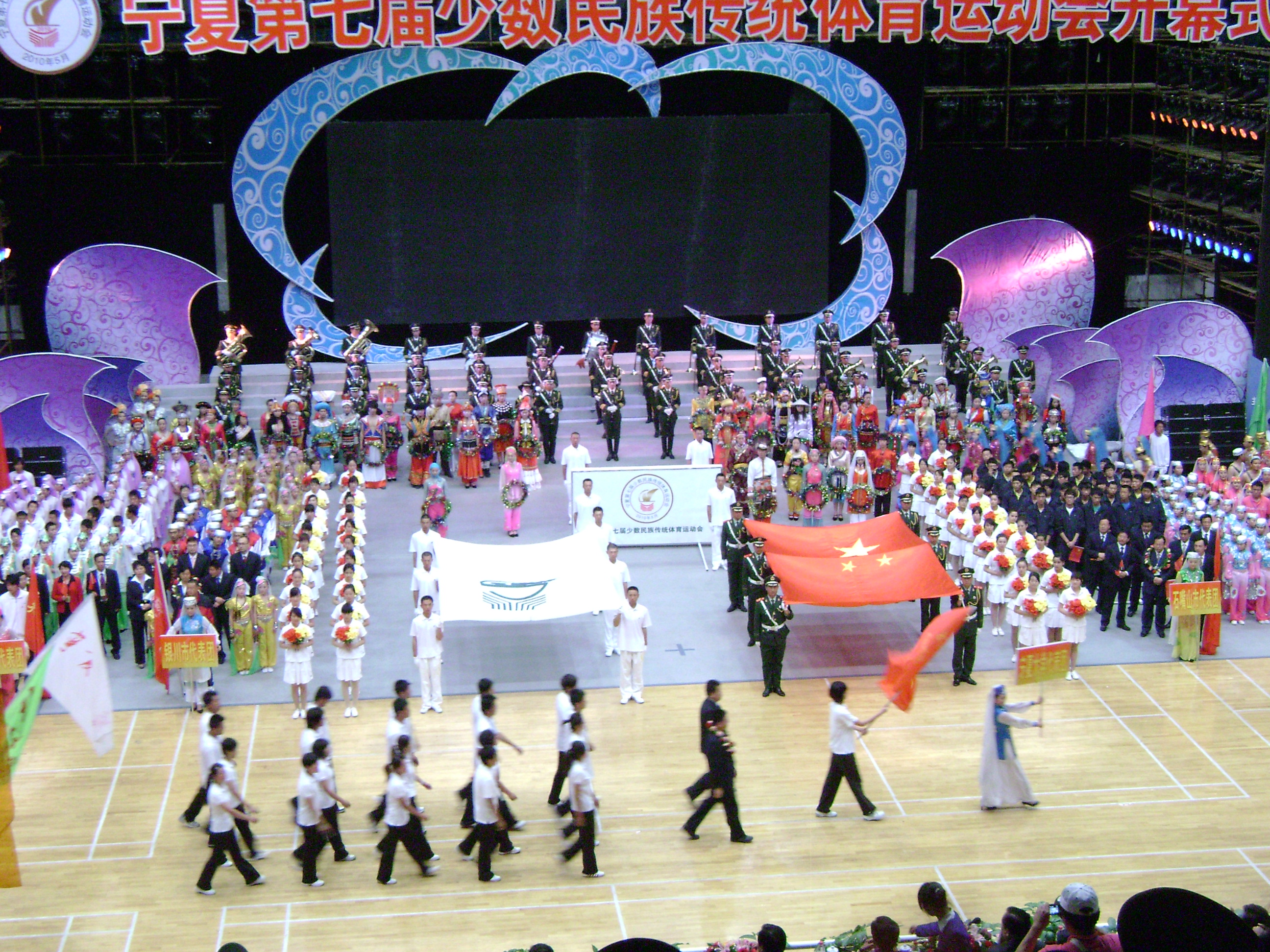 5月24日,宁夏回族自治区第七届少数民族传统体育运动会在银川体育馆隆重开幕。全区九个代表团、近千名运动员将参加武术、木球、蹴球、民族式摔跤等一系列具有民族特色的比赛项目。