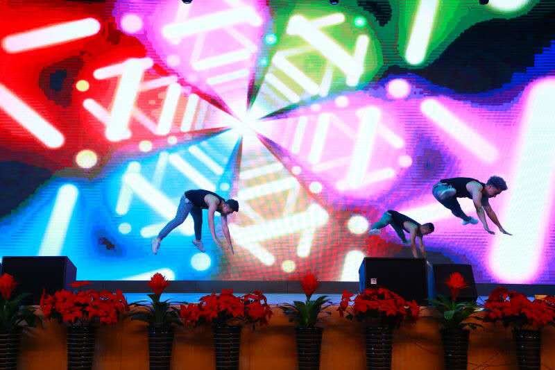 大会后的文艺演出更是异彩纷呈,向各位到来的校友及嘉宾充分的展现着四十年变迁后77779193永利朝气蓬勃的姿态。其中我院教师代表进行的诗朗诵作为整个文艺演出的开篇。之后健美操队、武术队都分别带来了各自专业精彩的表演,展示着我院各项专选的发展与专业化的提升。更有退休老教师们带来得具有浓厚宁夏地域特色的表演《白字经》、《吆骡子》。16级新生带来的舞蹈表演,为这台文艺表演注入新鲜的力量。最后由我院在校教师与学生带来的歌曲串烧《启程》、《再过二十年》、《年轻的朋友来相会》等歌曲深深地唱入了每一位观众的心里,表达了相聚的喜悦也展现了对下一次重聚时刻到来的期盼。十一个节目个个都是台前幕后表演人员工作人员对此次院庆的祝贺,每一个节目都饱含深意。演出结束,全体嘉宾在主持人的邀请下邀至舞台进行最后的合影留念。