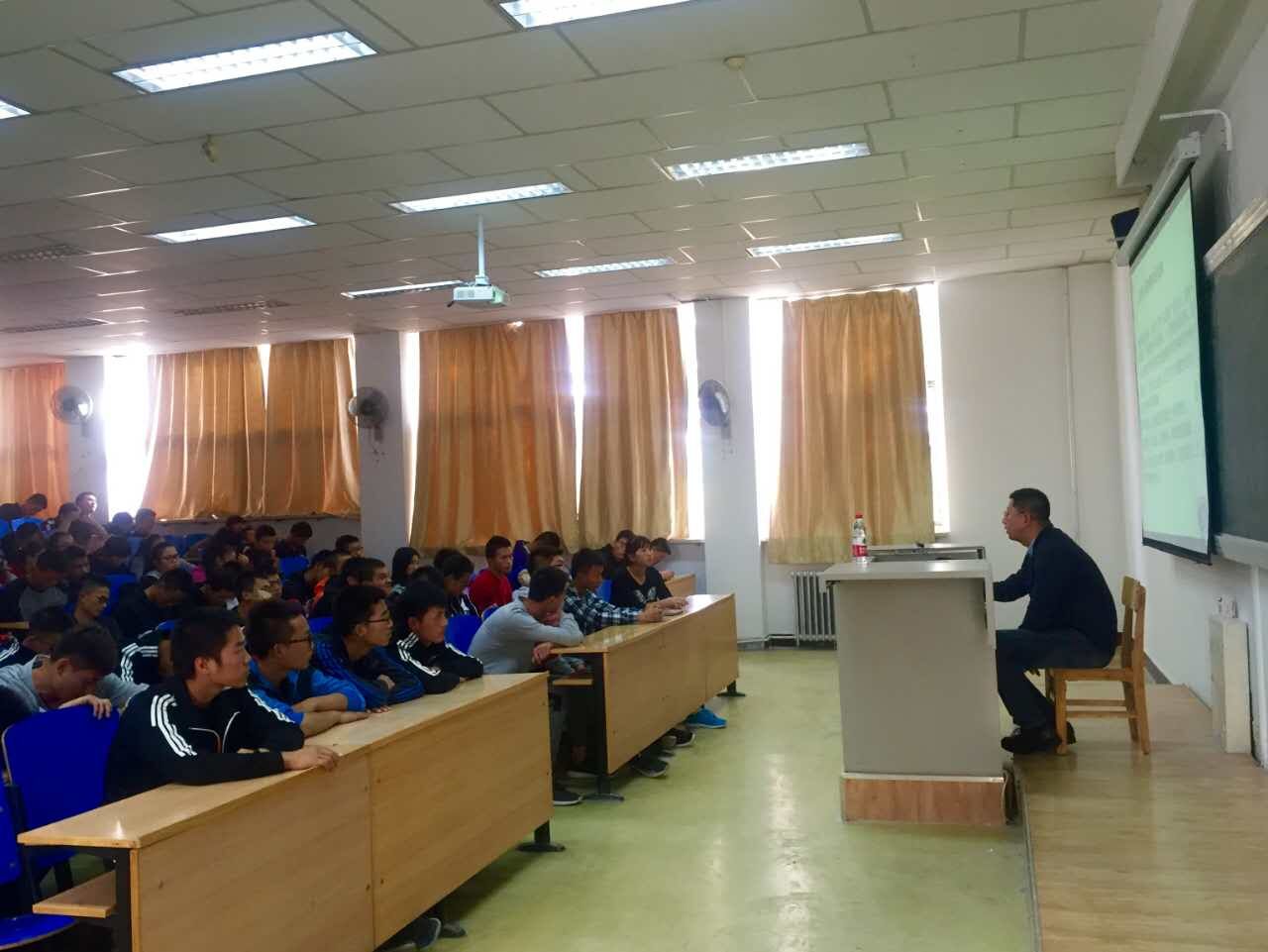 首先,杨大夫耐心地为大家讲解急救知识的重要性,理性的求救方式,以及拨打120时应说明详细地址,争分夺秒确保患者的生命安全。紧接着他阐述了突发性死亡的原理,希望同学们能够学到常用的急救知识,掌握基本的急救技巧和日常护理,使我们在意外情况发生时实行有效的急救方式,确保生命安全。为了使同学们更好的掌握相关知识,他一一列举了一些常见的处理措施,例如对擦伤伤口的紧急处理,以及急救止血技术,急救固定技术,急救包扎技术,脊椎骨折急救搬运技术等。这些急救知识,一方面有利于学生初步掌握自救互救知识,提高自救互救技能。另一方面是对他人生命的尊重,避免发生弄巧成拙恶化病情的状况出现。在学生互动环节,杨大夫一一纠正了同学们错误的急救方式,同学们表示受益匪浅。最后,杨大夫真心祝愿体院的莘莘学子训练时注意安全,掌握急救措施,唱响生命插曲。