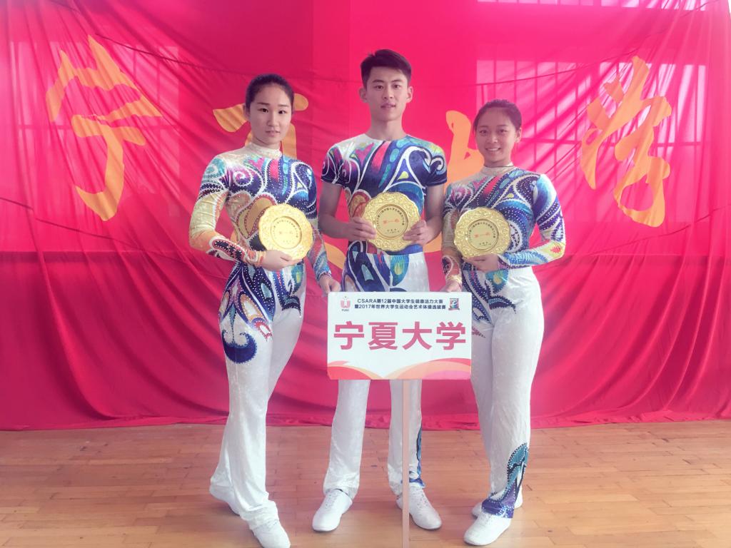 校健美操代表队由体操教研室主任马艳军老师担任教练,马锐、朱天泽、王国瑞、赵子文、赵婧怡、梁迎春、韩梦垚,沈毓坤、宋思雨、杨立哲、张雨晴、封慎玥共12名运动员组队参加了此次大赛的7项赛事。我校健美操代表队的队员们依靠常年艰苦训练打下扎实的基本功,发挥勇于拼搏的精神,以饱满的信心与热情投入赛事,在比赛中展示出高超的专业水准,最终以精湛的专业技术与良好的精神面貌,赛出风格赛出水平,用自身实力征服了观众与裁判,获得混合三人操第一名,男子三人操、混合五人操第二名,混双、有氧舞蹈第三名,女单第四名的优异成绩……,同时还获得了团体总分第六名,继去年参加此项赛事再创辉煌,又一次取得历史性突破,创造了有史以来我校参加全国各级各类单项高水平体育赛事最好成绩,为我校争得极大的荣誉!