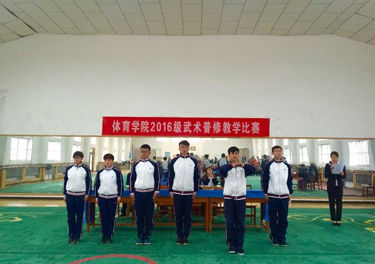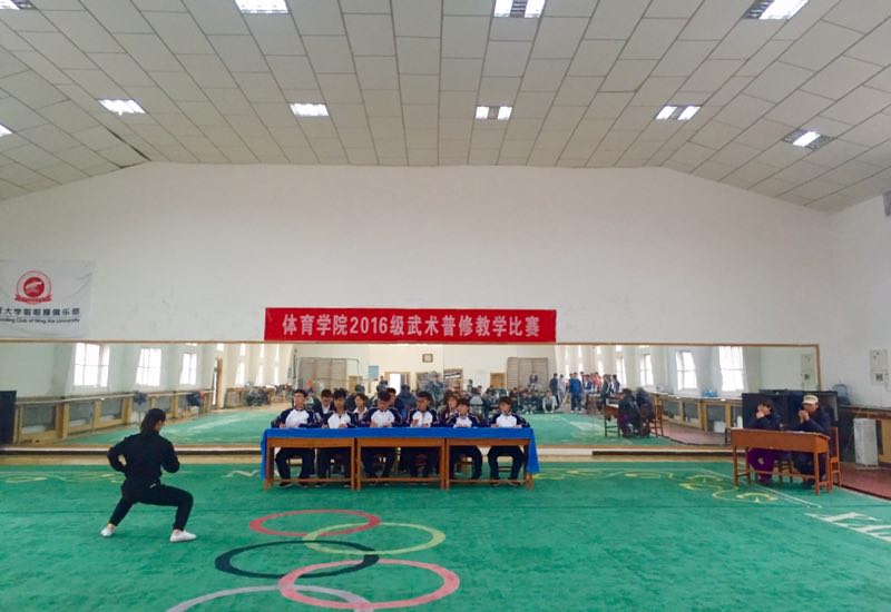 2016年12月20日下午两点,在77779193永利武术专选队的组织下首届武术比赛在B区体操馆顺利举行。高涛老师,秦丽老师,2013级学生姚新兵分别担任本次比赛总裁判长、副总裁判长和裁判长,韦美桥、杨海博、马宗军、肖海霞、付立帅等担任裁判员。全体2016级体育教育专业、社会体育专业学生参加本次比赛,本次比赛内容为段位制长拳三段套路,采用国家体育总局武术运动管理中心2011年审定的《武术套路竞赛规则》和本规程的有关补充规定进行比赛评分。参赛学生于2016年12月20日,以班级为单位报名,凭学生证参加比赛,男女生分别录取前八名予以奖励。