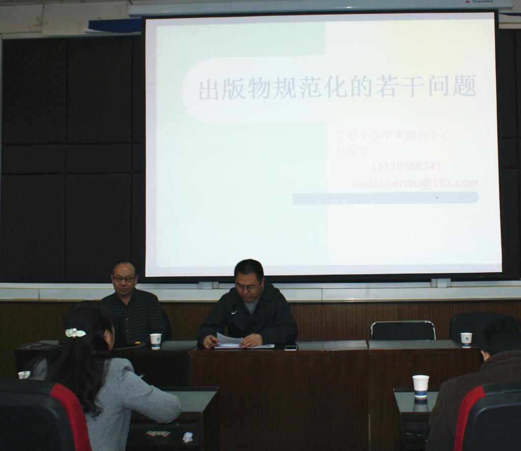 马春宝教授从出版物内容质量常见差错、出版物规范化的相关标准、出版物的校对与参考资料等方面展开讲解。马春宝教授的报告以严谨的精神、科学的观点、独到的见解和翔实的事例,让在座的学院师生享受到了一场盛大的学术、文化大餐,参会师生受益匪浅。