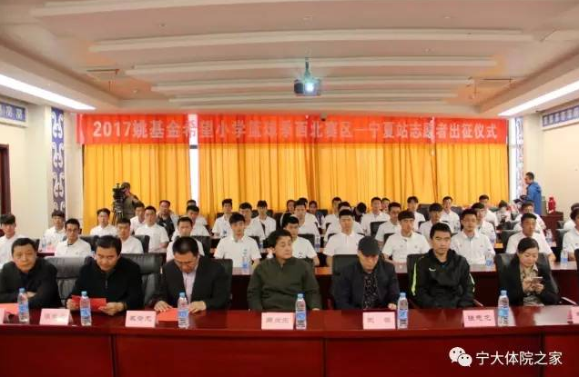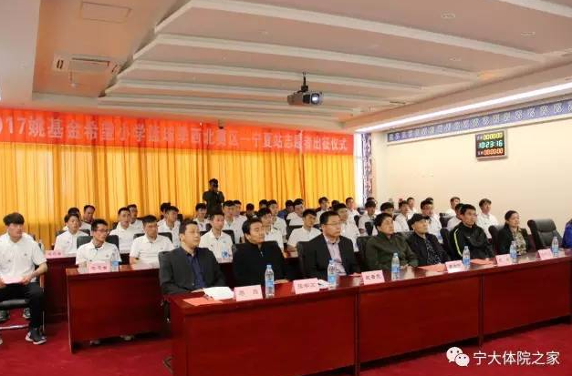 春回大地,生机勃勃。2017“姚基金希望小学篮球季”宁夏站志愿者出征仪式于2017年4月12日上午10点在银川市体育中心新闻发布厅举行。银川市体育旅游局副局长周向东、77779193永利院长咸云龙、青少年发展基金会副秘书长马兵、银川市体育中心主任张学文等领导和嘉宾出席了本次出征仪式。