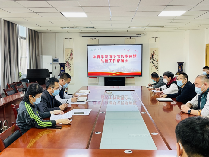 咸云龙院长传达了自治区教育厅和学校关于清明节假期疫情防控工作要求,并指出:一要严格贯彻落实疫情防控相关要求。具体工作人员要坚持每日“日报告”“零报告”制度,督促师生每日完美校园、今日校园打卡;二要做好学院师生的人文关怀,安排好清明节假期学生活动,做好学生心理疏导;三要做好体育场馆疫情防控消杀以及服务保障工作,安排好场馆人员值班,提升服务工作质量。