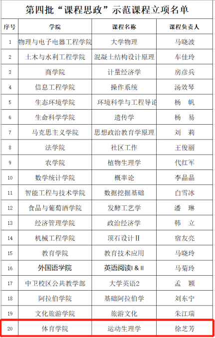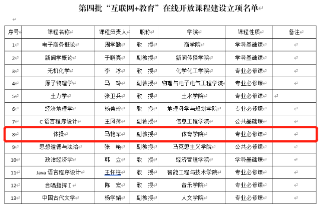 近期,本科生院公布《永利集团校级优秀基层教学组织评选结果公示》、《第四批“课程思政”示范课程建设项目评选结果公示》、《第四批“互联网+教育”在线开放课程建设立项评选结果公示》。我院古雅辉副院长负责的体育教育系获批永利集团“校级优秀基层教学组织”、徐芝芳教授负责的《运动生理学》获批第四批“课程思政”示范课程立项、马艳军副教授负责的《体操》获批第四批“互联网+教育”在线开放课程建设立项。