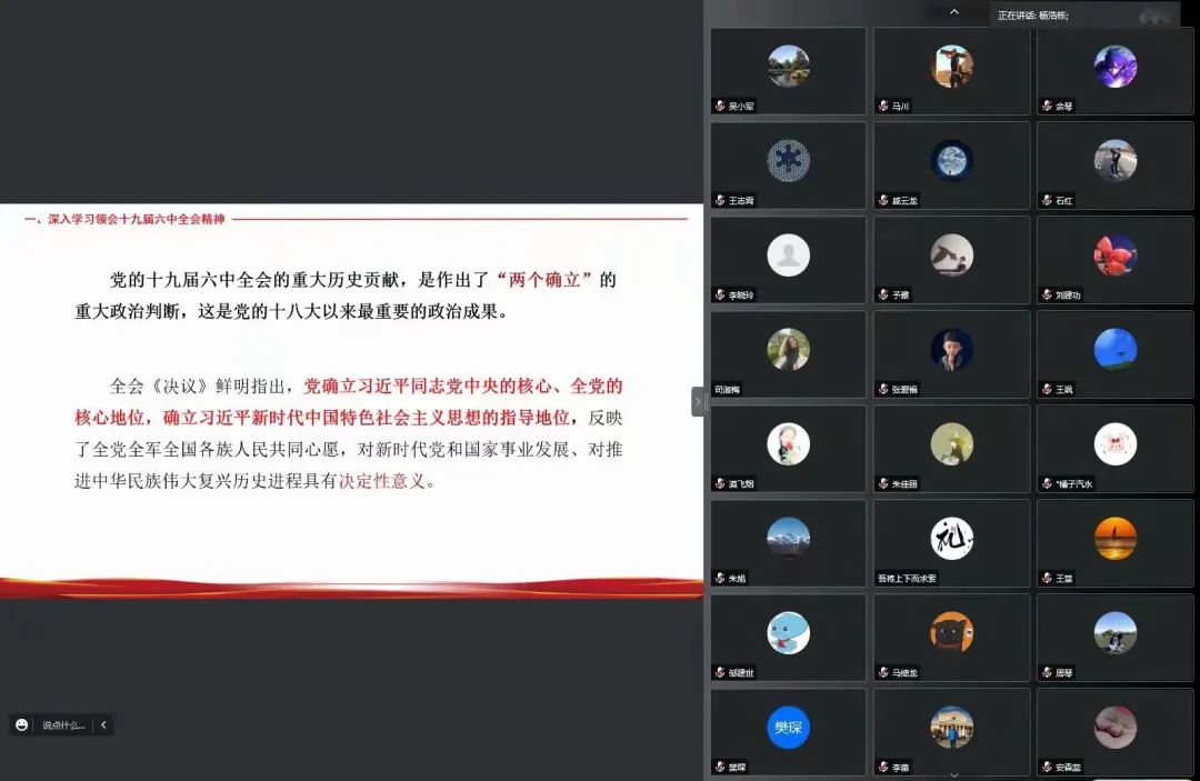 王思鸿老师就深入学习领会十九届六中全会精神,深刻感悟习近平总书记视察宁夏重要讲话和重要指示批示精神的真理力量和实践伟力,以高度的政治自觉推动习近平总书记视察宁夏重要讲话和重要指示批示精神进一步落地生根、开花结果三部分内容,向老师和学生们系统讲述了习近平新时代中国特色社会主义思想和习近平总书记视察宁夏重要讲话和重要指示批示精神。
