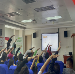 2023年5月20日,李晓玲老师和燕小妮带领二名学生参加了在宁夏医科大学附属医院总院举办的,由宁夏医科大学附属医院总院儿科、营养科与宁夏营养学会ERAS营养分会儿童肥胖学组共同主办的《2023年度儿童青少年肥胖防治沙龙》活动,并进行了《肥胖儿童合理运动助力健康》为主题的讲座。讲座就肥胖儿童减重期间运动项目的选择、运动量的控制与监控、运动注意事项等进行了阐述。讲座最后,老师和学生一起带领参与活动的家长、孩子进行了形式多样的运动。通过本次沙龙活动,旨在传授科学运动的理念与方法,提升肥胖儿童青少年及家长的运动意识,认识只有合理的饮食控制,结合适量的运动才是预防和治疗青少年肥胖最科学的方法。