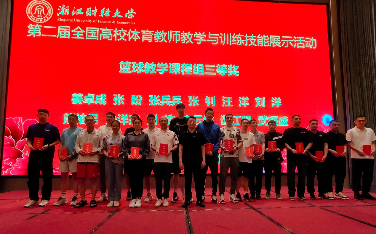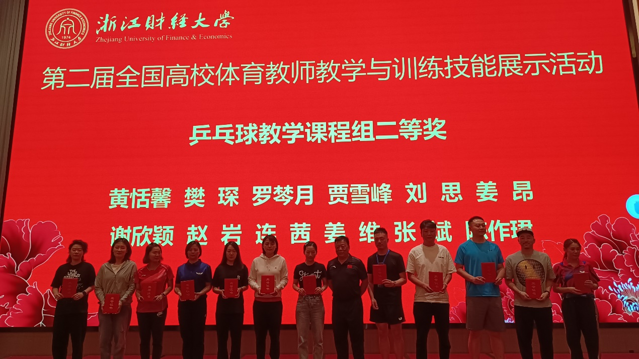 5月27日,由全国高等学校体育教学指导委员会主办,浙江财经大学承办的第二届全国高校体育教师教学与训练技能展示活动在浙江财经大学(下沙校区)顺利闭幕。本次比赛共有来自全国二十八个省市自治区、一百四十六所高校的近200名体育教师参加。比赛设置了篮球、乒乓球、游泳三个项目,分网络评审与现场测试两环节,其中网络评审项目为教学(指导)设计与教学(指导)实践,现场测试项目为体能与专项技能。我校选派的樊琛、刘攀两位教师分获乒乓球项目课程教学组二等奖和篮球项目课程教学组三等奖。