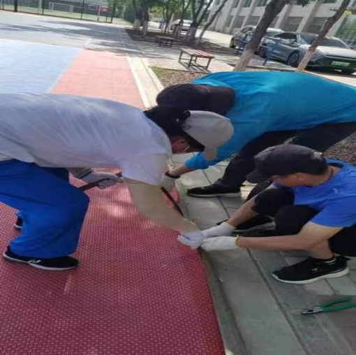 29日至1日,学院对运动场地排查出的各项风险隐患进行了及时的治理,工作人员对单双杠设备进行加固,对篮筐篮板进行维修与固定,对破损的地板地胶进行修补,确保师生运动安全。