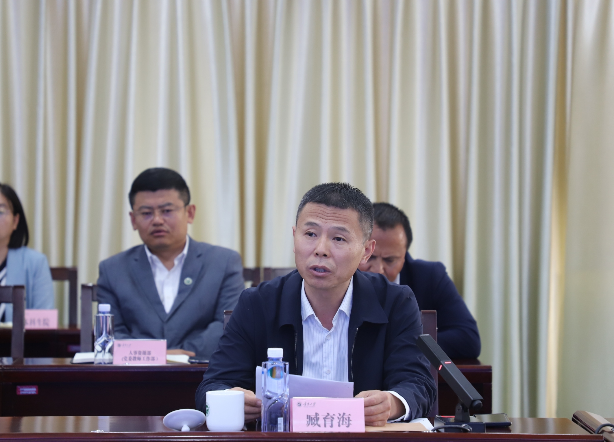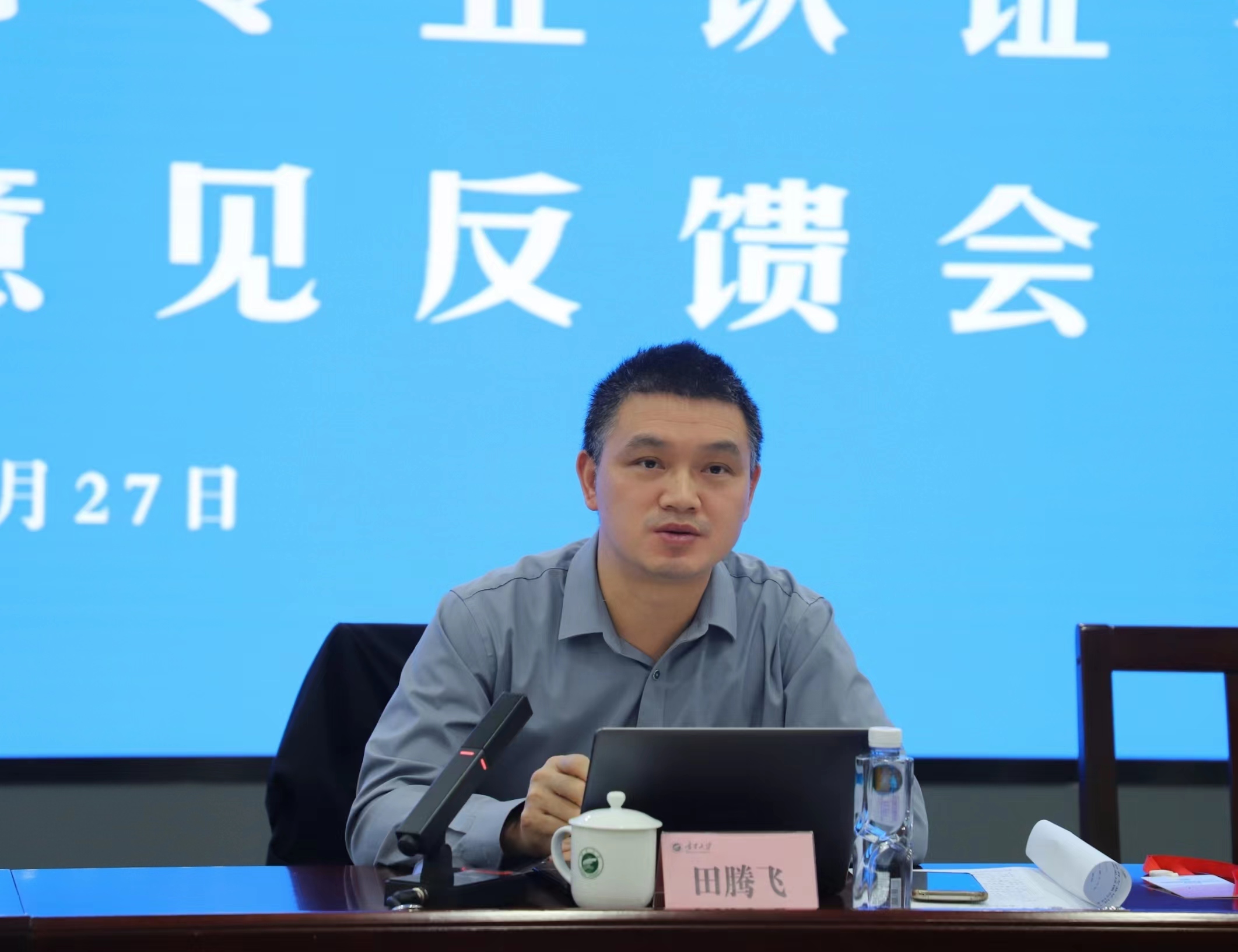 评估机构代表田腾飞围绕如何深刻理解师范专业认证的重要价值、如何准确理解师范类专业认证的实质内涵、正视认证工作中反映的共性问题等就我校如何推进工作做了交流发言。