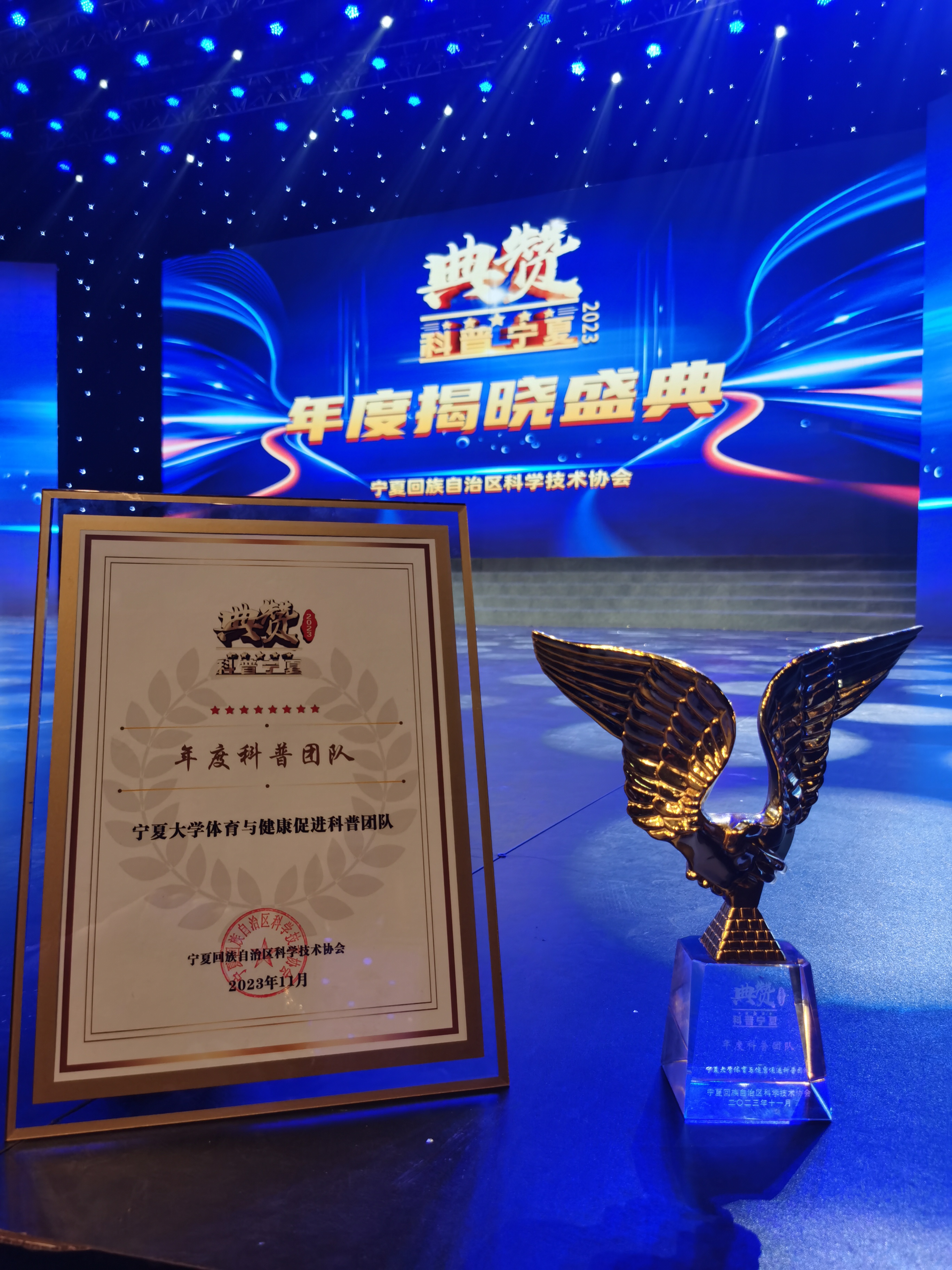 12月15日,由宁夏科协主办的“典赞·2023科普宁夏”揭晓盛典在银川举办。自治区党委副书记庄严出席揭晓盛典并颁奖。永利集团体育与健康促进科普团队荣获“典赞·2023科普宁夏”年度科普团队。