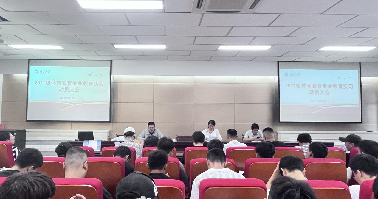 根据永利集团教育实习工作安排,我院于2024年8月28日在77779193永利报告厅召开了2021级体育教育专业教育实习工作动员大会。77779193永利马兆明副院长、古雅辉副院长、体育教育系主任王振洲以及全体实习指导教师出席会议,会议由系主任王振洲主持。