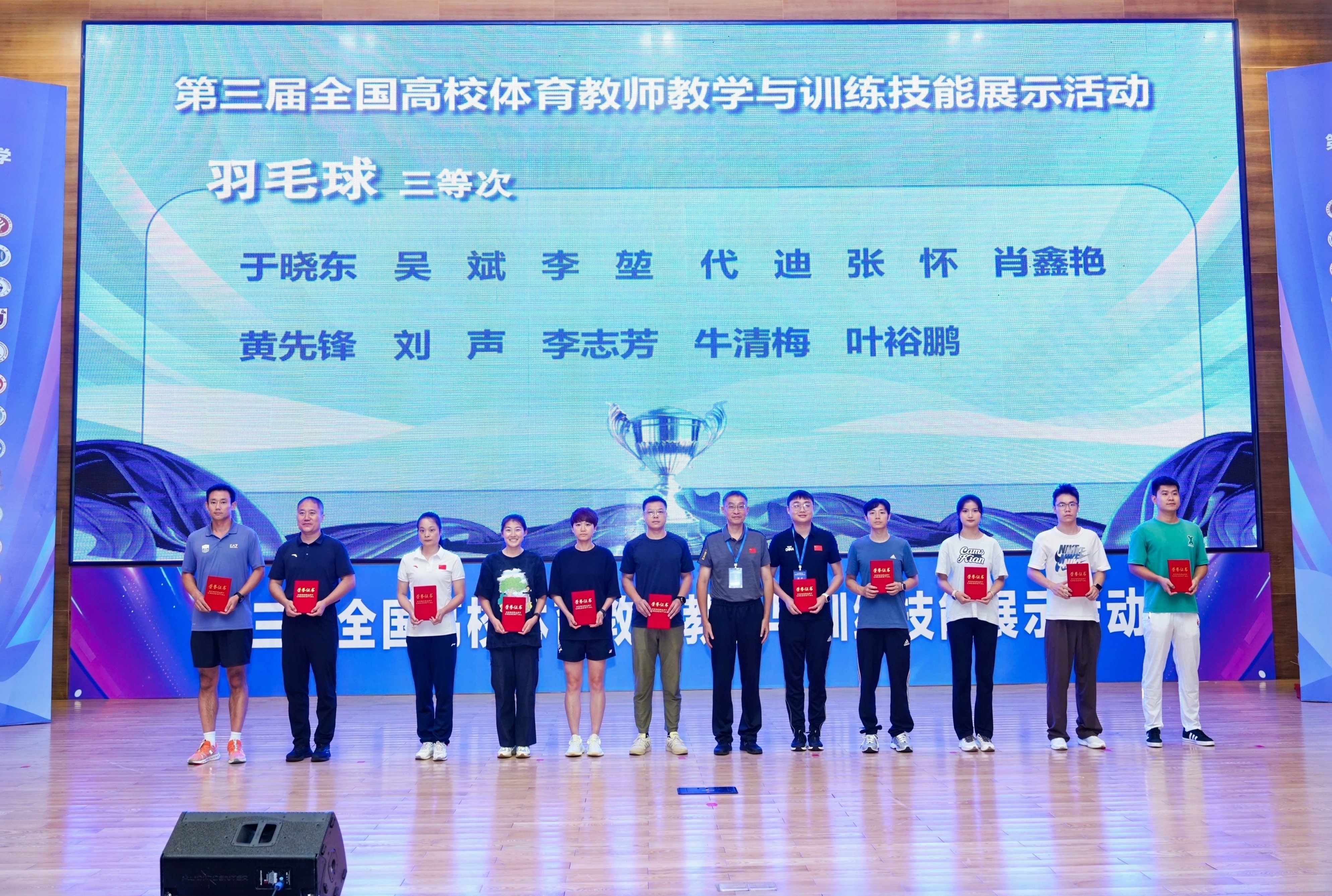 大赛分为网络评审与现场测试两个环节,全面考察高校体育教师的教学能力与专业技能。自接到参赛通知起,学院高度重视此次展示活动,全力投入备赛工作。组织教师帮助参赛教师优化教学设计、积极开展专业技能训练,同时调配专业团队负责视频录制工作,为参赛教师创造了优越的训练环境和全方位的支持与保障。最终,李志芳老师凭借优秀的教学设计和出色的现场表现,荣获羽毛球项目组三等奖,充分展现了我院教师的精神面貌和专业素养。王太康老师虽然未能在本次大赛中获奖,但他的教学设计获得了专家高度认可,展现了我校体育教师的深厚实力和不懈追求。