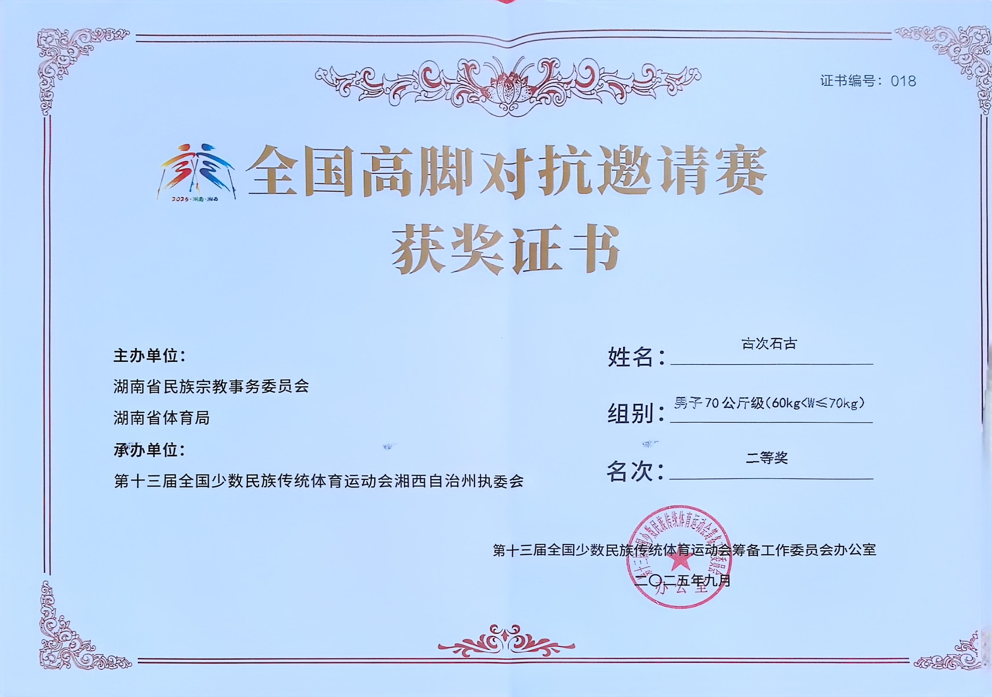 为筹备2027年全国第十三届少数民族传统体育运动会、推动高脚对抗项目成为新增项目,2025年9月28日,全国高脚对抗邀请赛在湖南省湘西自治州吉首市拉开帷幕。赛事共设男子5个级别、女子5个级别的个人对抗赛,吸引全国12个省、自治区的选手同台竞技。