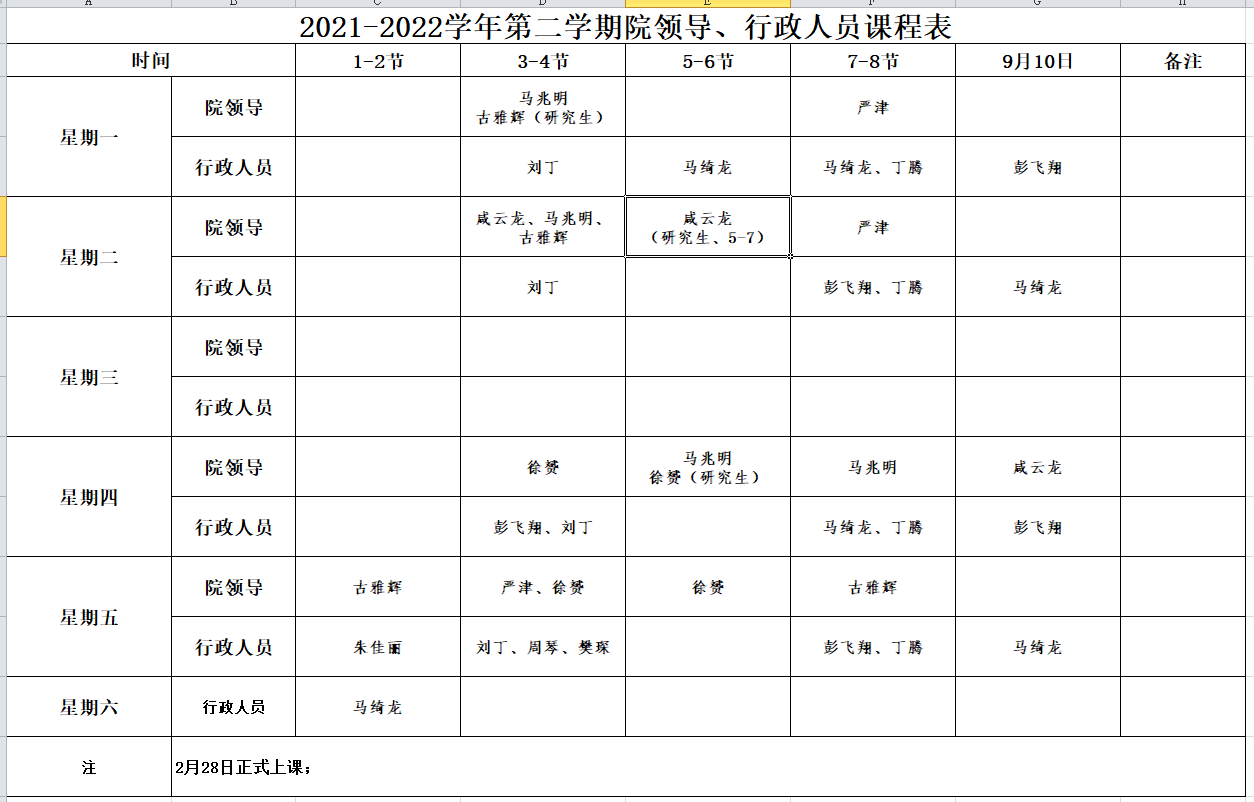 77779193永利2021-2022学年第二学期院领导、行政人员课程表