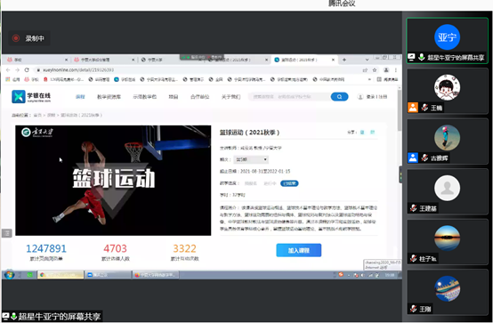 培训会上,牛亚宁老师就如何运用新泛雅平台开展课程建设,重点介绍和讲解了示范教学包在课程建设中的运用、学生学习方式及教学互动、运用大数据进行教学分析以及教学监控等方面,并以《篮球运动》这门课程为例,演示了新泛雅平台开展课程建设的各项操作及应用。随后,牛老师与在座教师进行了交流答疑,针对教师们提出的问题进行了深入探讨和详细解读。